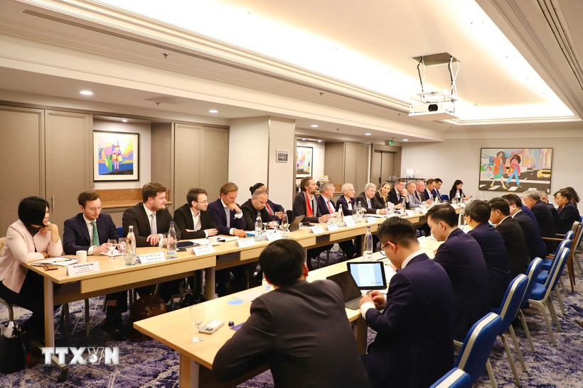 Tọa đàm giữa Việt Nam và Đức, trao đổi về phát triển Trung tâm tài chính quốc tế tại Việt Nam và tăng cường hợp tác kinh tế song phương tại Frankfurt am Main ngày 30/9. Ảnh: Phương Hoa/TTXVN |