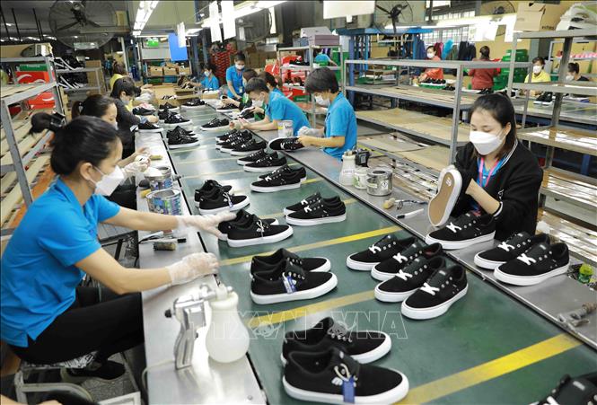 Kiểm tra, hoàn thiện sản phẩm giầy để xuất khẩu tại nhà máy của Công ty TNHH hóa dệt Hà Tây ở xã Tân Lập (huyện Đan Phượng, Hà Nội). Ảnh: Vũ Sinh/ TTXVN |