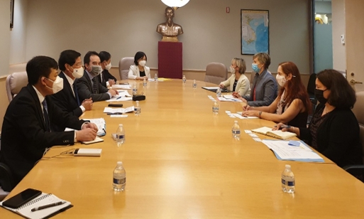 Thứ trưởng Lê Quốc Doanh (thứ 2 từ dưới lên, hàng ghế bên trái) và đoàn đại biểu Bộ NN&PTNT Việt Nam làm việc với Cơ quan đại diện thương mại Hoa Kỳ (USTR). Ảnh: chinhphu.vn |