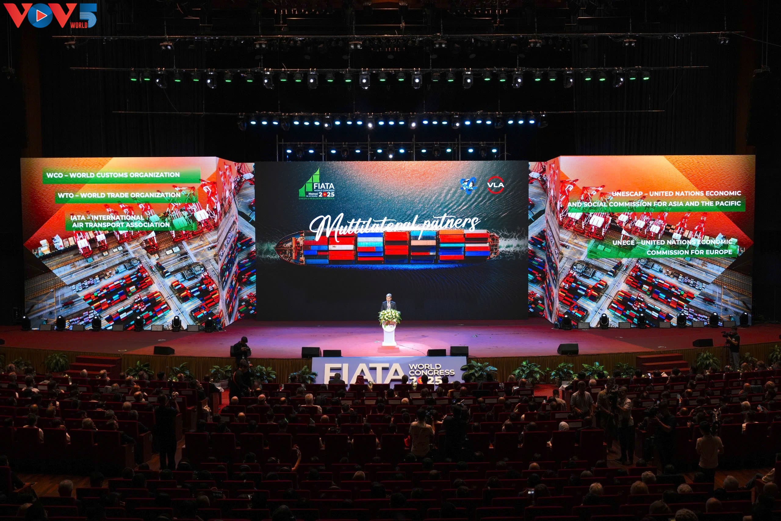 Phiên toàn thể Đại hội Hiệp hội Giao nhận Vận tải Quốc tế - FIATA World Congress 2025 khai mạc sáng 8/10, tại thành phố Hà Nội. Sự kiện do Hiệp hội Doanh nghiệp Dịch vụ Logistics Việt Nam (VLA) đăng cai, phối hợp cùng Liên đoàn các Hiệp hội Giao nhận và Vận tải Quốc tế (FIATA) và các đối tác quốc tế tổ chức.