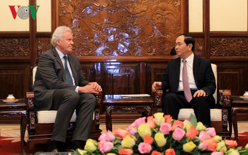 Tại buổi tiếp, Chủ tịch nước Trần Đại Quang khẳng định Việt Nam luôn coi trọng và mong muốn thúc đẩy quan hệ hợp tác cùng có lợi với Hoa Kỳ theo hướng thực chất, toàn diện, ổn định và lâu dài trên cơ sở tôn trọng thể chế chính trị của nhau.