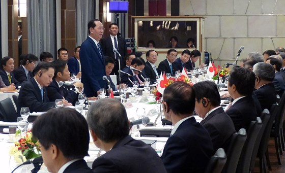 Phát biểu tại cuộc gặp, Chủ tịch nước Trần Đại Quang cho biết Việt Nam đang phấn đấu duy trì tốc độ tăng trưởng kinh tế giai đoạn 2016 - 2020 với GDP bình quân 6,5 - 7%/năm, tiếp tục ổn định kinh tế vĩ mô, phát triển bền vững gắn với bảo vệ môi trường, giữ vị thế là quốc gia năng động, điểm đến đầu tư hấp dẫn trong khu vực ASEAN và tham gia sâu hơn trong chuỗi giá trị toàn cầu.