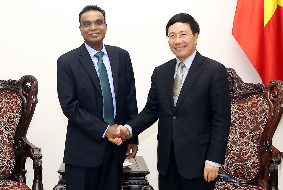 Chiều 18/1, tại Hà Nội, Phó Thủ tướng, Bộ trưởng Ngoại giao Phạm Bình Minh tiếp Tiến sĩ D.J Pandian, Phó Chủ tịch kiêm Tổng Giám đốc khối đầu tư của Ngân hàng Đầu tư cơ sở hạ tầng châu Á (AIIB), nhân chuyến thăm làm việc tại Việt Nam.