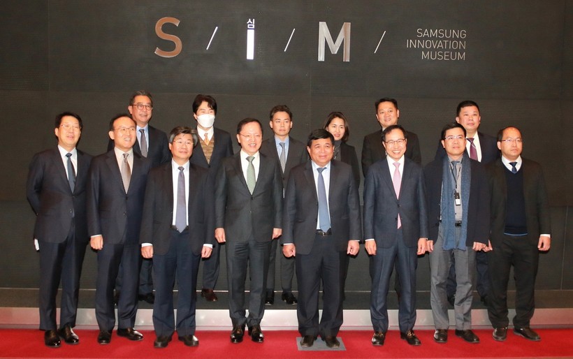 Đoàn đại biểu Bộ Kế hoạch và Đầu tư chụp ảnh lưu niệm với Đoàn đại biểu Tập đoàn Samsung tại Viện bảo tàng Đổi mới Samsung (Samsung Innovation Museum) khi tới thăm Tập đoàn Samsung tại Samsung Digital City ở thành phố Suwon, tỉnh Kyungg. Ảnh: Đức Thắng/TTXVN |