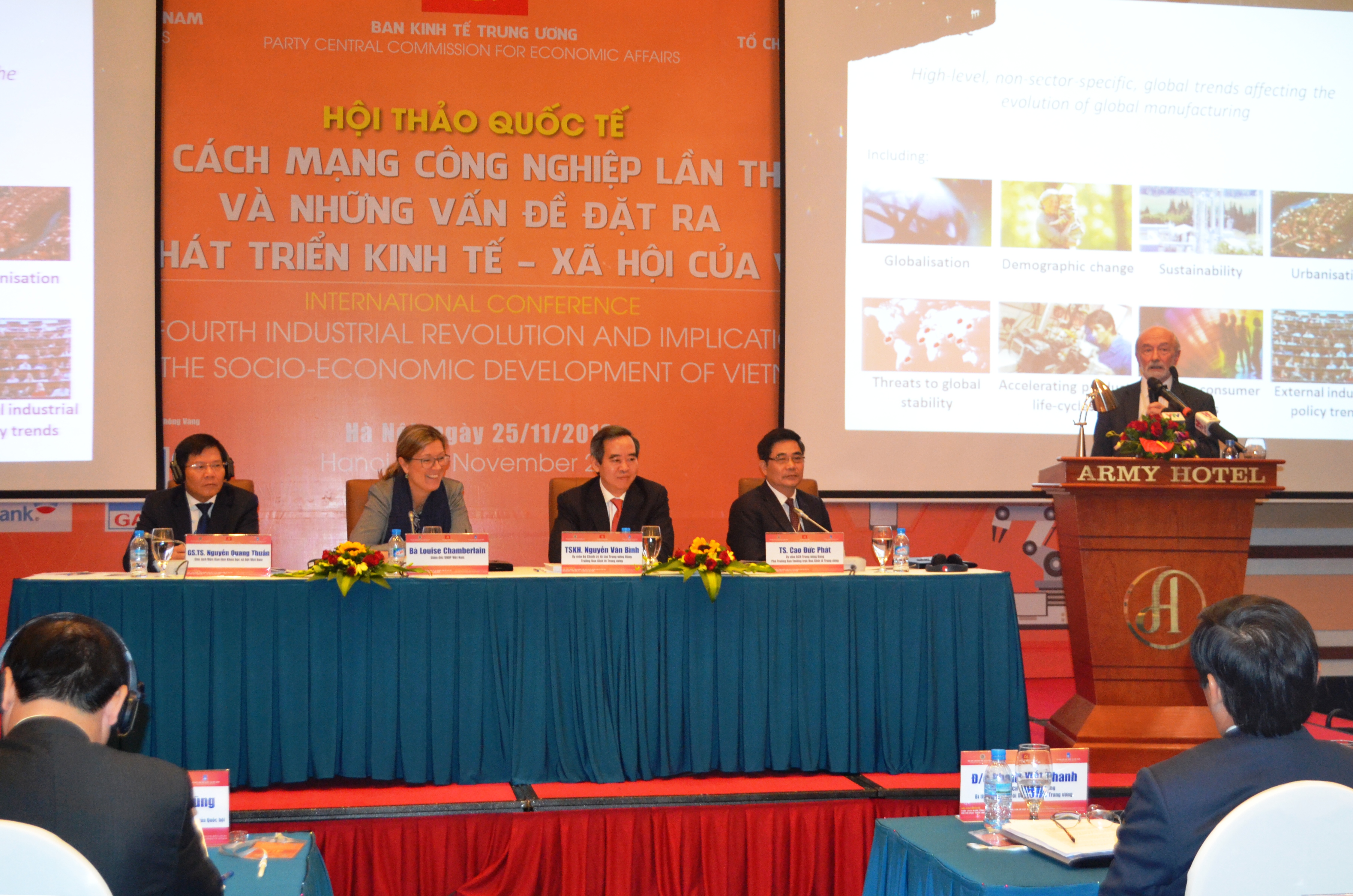 Phát biểu khai mạc hội thảo, ông Nguyễn Văn Bình, Trưởng Ban Kinh tế Trung ương, khẳng định Đảng, Nhà nước Việt Nam rất quan tâm đến xu thế phát triển của công nghiệp hiện nay. Do vậy, các nhà khoa học, các chuyên gia, các nhà quản lý cần thảo luận làm rõ hơn các đặc trưng, tác động và hàm ý chính sách của cuộc cách mạng công nghiệp lần thứ tư tới các nước phát triển và đang phát triển.