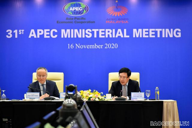 Phó thủ tướng, Bộ trưởng Ngoại giao Phạm Bình Minh dẫn đầu đoàn Việt Nam tham dự hội nghị. Phát biểu tại Hội nghị, Phó Thủ tướng Bộ trưởng Ngoại giao Việt Nam Phạm Bình Minh khẳng định vị thế diễn đàn hợp tác kinh tế quy mô lớn của APEC trong liên kết kinh tế trong khu vực. Tuy nhiên APEC đang đối mặt với những thách thức do đại dịch COVID -19 gây ra. Do đó các nền kinh tế thành viên cần thúc đẩy tinh thần đoàn kết, hợp tác để đi đầu trong nỗ lực kiểm soát dịch bệnh, giữ vững đà hợp tác và liên kết kinh tế khu vực. Về nỗ lực về xây dựng Tầm nhìn APEC sau năm 2020, Phó thủ tướng, Bộ trưởng Ngoại giao Phạm Bình Minh nêu rõ: Việt Nam ủng hộ hoàn toàn việc thông qua Tuyên bố của lãnh đạo các nền kinh tế thành viên APEC về Tầm nhìn APEC sau 2020 nhằm đề ra những định hướng chiến lược, dài hạn cho hợp tác APEC trong bối cảnh thế giới và khu vực đang thay đổi nhanh chóng và sâu sắc.. Với một tầm nhìn tham vọng và định hướng như vậy, cần tiếp tục khẳng định APEC là một diễn đàn quan trọng để thúc đẩy sự hợp tác kinh tế khu vực- động lực chính cho việc xây dựng một Cộng đồng châu Á Thái Bình Dương hòa bình, kết nối, thích ứng và sáng tạo.