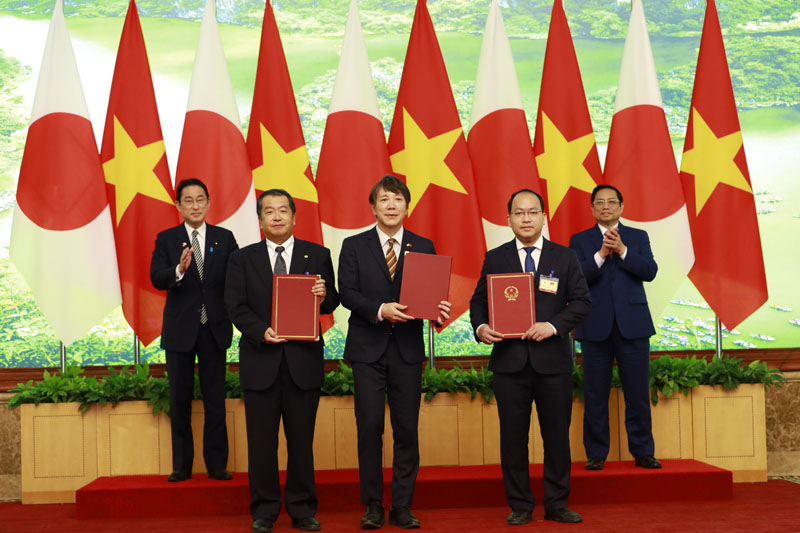 Đại diện JCCI, JETRO và NIC trao biên bản ghi nhớ hợp tác. Ảnh: Ánh Huyền |