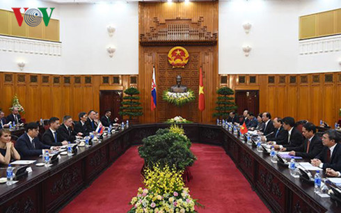 Thủ tướng Nguyễn Xuân Phúc cho biết cuộc hội đàm lần này hai bên thống nhất cao về hợp tác thương mại, đầu tư giữa hai nước VN-Slovaikia. Kim ngạch thương mại hai nước đã tăng lên 15 lần trong thời gian qua, nhưng tiềm năng thế mạnh của hai nước còn rất lớn. Vì vậy, hai bên đã đưa ra nhiều nội dung, giải pháp quan trọng, để thúc đẩy hơn nữa về thương mại, đầu tư, du lịch:"Hai bên hoan nghênh các doanh nghiệp Slovakia đầu tư vào Việt Nam trong các lĩnh vực mà Slovakia có thế mạnh và Việt Nam có nhu cầu, như năng lượng, công nghiệp phụ trợ, chế tạo máy, thiết bị y tế, chế biến thực phẩm. Đặc biệt, trong chuyến thăm này đã có nhiều văn kiện được ký kết về hợp tác giữa hai nước cấp chính phủ, và đặc biệt các doanh nghiệp đã có những hợp đồng, bản ghi nhớ hết sức quan trọng, đó là đường ống dẫn dầu sang Lào, điện chiếu sáng ở Nghệ An, Việt Nam đầu tư vào chế biến gỗ ở Slovakia và một số dự án quan trọng khác. Chúng tôi cho rằng Ngài Thủ tướng Robert Fico đến thăm VN lần này rất thành công, mở ra không gian mới và điều kiện cụ thể để hai nước hợp tác nhiều mặt trên các lĩnh vực trong thời gian tới".