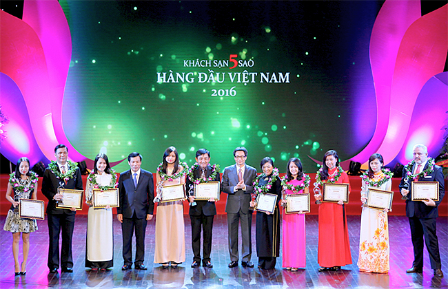| Phó Thủ tướng Vũ Đức Đam trao tặng giải thuởng cho 10 khách sạn, resort 5 sao hàng đầu. Ảnh VGP/Nguyệt Hà |