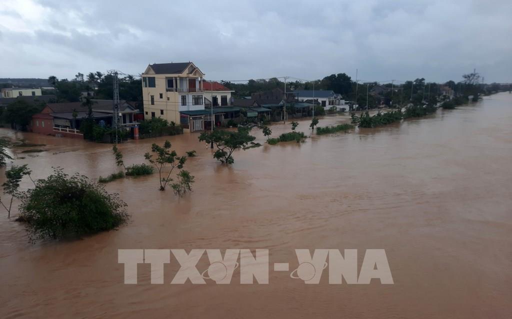Nước sông Hiếu dâng cao, gây ngập lụt nhà dân và đường giao thông ở phường Đông Thanh, thành phố Đông Hà, Quảng Trị ngày 16/10.- Ảnh: Hồ Cầu-TTXVN |