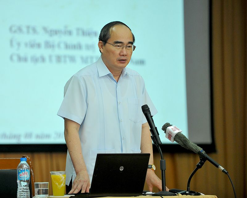 (VOV5) - Chủ tịch Ủy ban Trung ương Mặt trận Tổ quốc Việt Nam Nguyễn Thiện Nhân khẳng định như vậy tại buổi trao đổi chuyên đề bồi dưỡng cán bộ Mặt trận 28 tỉnh phía bắc tổ chức ngày 24/08 tại Hà Nội.