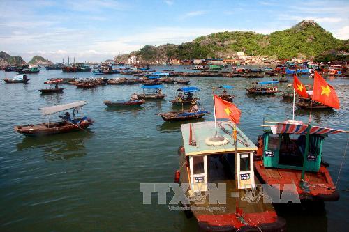 Tàu phục vụ khách du lịch tại đảo Cát Bà, huyện Cát Hải - Ảnh: Thế Duyệt/TTXVN |