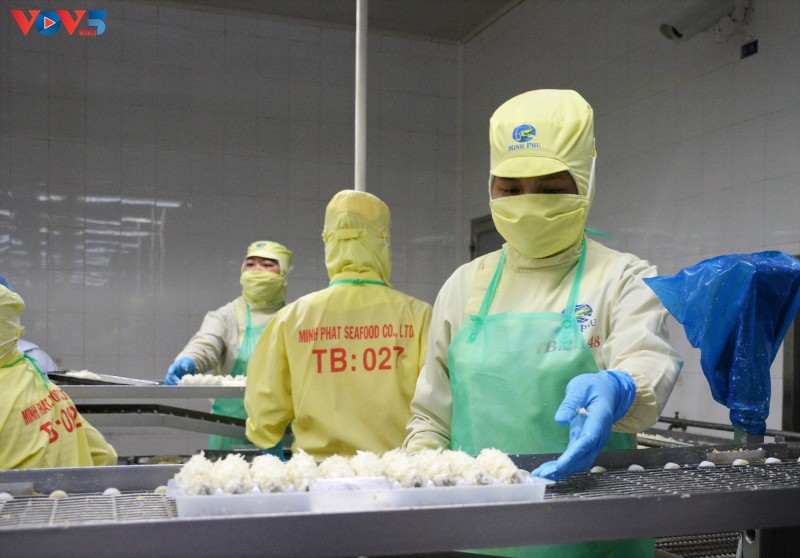 Chế biển thủy sản xuất khẩu tại Tập đoàn Thủy sản Minh Phú, TP. Cà Mau. Ảnh: Trần Hiếu/ VOV |