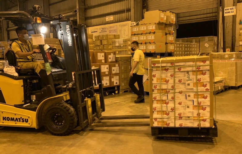 Vải thiều Bắc Giang tập kết tại kho hàng không trước khi lên máy bay sang Nhật - Ảnh: VOV |