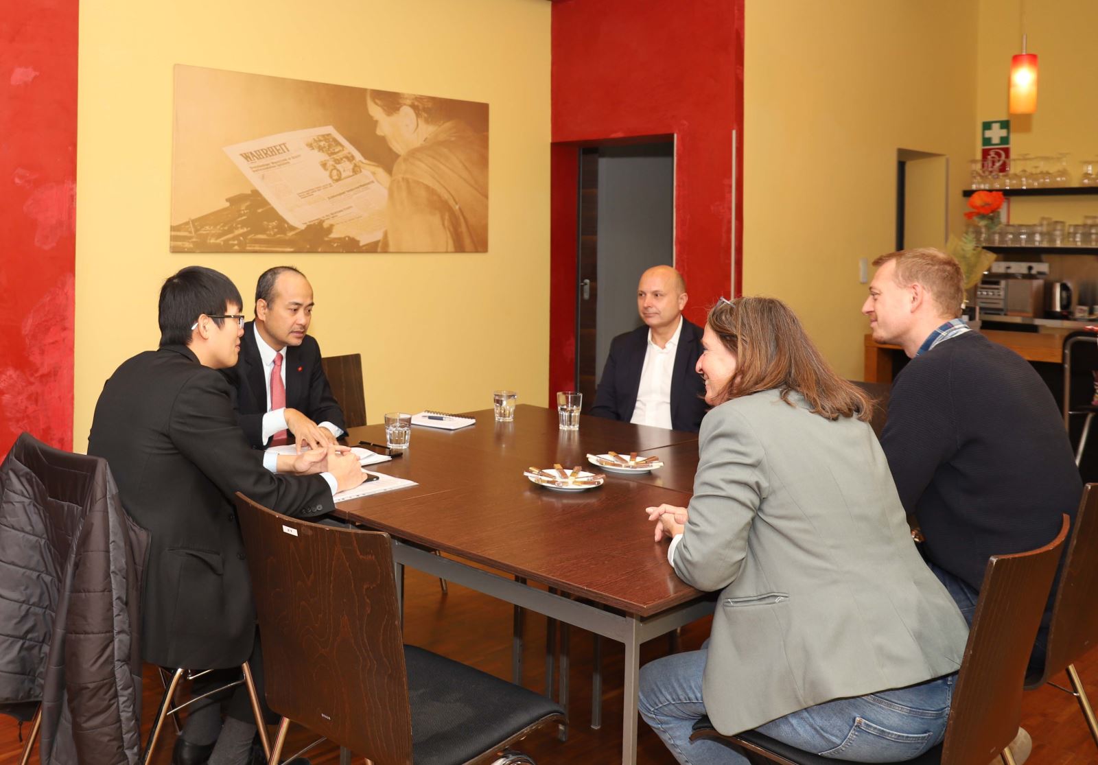 Đại sứ Nguyễn Trung Kiên làm việc với bà Elke Kahr - Chủ tịch Đảng Cộng sản Áo (KPO) tại bang Styria, người sẽ nhậm chức thị trưởng thành phố Graz (thủ phủ bang Styria) vào cuối năm nay. Tại buổi làm việc, hai bên thống nhất thúc đẩy hợp tác trong thời gian tới trên các lĩnh vực kinh tế, công nghiệp, nghiên cứu - đào tạo, du lịch - văn hóa, tổ chức các đoàn tham quan và trao đổi kinh nghiệm thực tế.