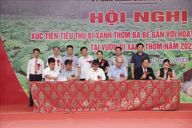 Hội nghị chứng kiến lễ ký kết 06 biên bản ghi nhớ hợp tác kết nối tiêu thụ bí xanh thơm, sản phẩm của chương trình "Mỗi xã phường một sản phẩm" (OCOP) giữa các doanh nghiệp, cơ sở sản xuất kinh doanh huyện Ba Bể với các đơn vị sản xuất, tiêu thụ ngoại tỉnh