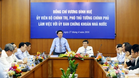 (VOV5) - Chiều 27/4 tại Hà Nội, Ủy viên Bộ Chính trị, Phó Thủ tướng Chính phủ Vương Đình Huệ đã có buổi làm việc với Ủy ban Chứng khoán Nhà nước.