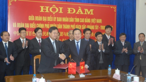 (VOV5)- Hôm nay (07/01), tại Cao Bằng, Đoàn đại biểu tỉnh Cao Bằng (Việt Nam) tiến hành hội đàm với Đoàn đại biểu thành phố Bách Sắc, tỉnh Quảng Tây (Trung Quốc).