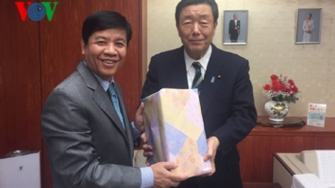 (VOV5) - Đại sứ Việt Nam tại Nhật Bản Nguyễn Quốc Cường làm việc với Bộ trưởng Bộ Nông-Lâm-Ngư nghiệp Nhật Bản Hiroshi Moriyama.