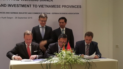 (VOV5) - Bộ Ngoại giao Việt Nam, Lãnh đạo Phòng Thương mại và Công nghiệp Đức cùng Lãnh đạo Hiệp hội Doanh nghiệp Đức tại Việt Nam ký Bản ghi nhớ hợp tác về việc tăng cường quảng bá thương mại và đầu tư; xúc tiến hoạt động kinh doanh, đầu tư và thương mại của Đức ở các địa phương của Việt Nam.