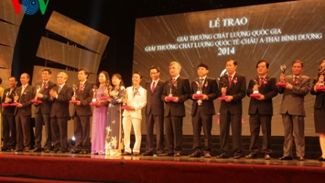 (VOV5) - Trong 65 doanh nghiệp được nhận Giải thưởng Chất lượng quốc gia năm 2014, có 19 doanh nghiệp được nhận giải vàng và 46 doanh nghiệp được nhận giải bạc.
