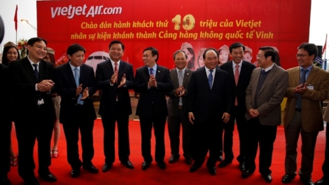 (VOV5) - Nằm trong chuỗi sự kiện khánh thành Nhà ga hành khách và công bố quy hoạch Cảng hàng không Vinh thành Cảng hàng không quốc tế, Vietjet tổ chức lễ chào đón hành khách thứ 10 triệu của hãng sau hơn 3 năm cất cánh.