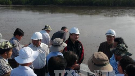 (VOV5) - Phó Thủ tướng Hoàng Trung Hải ghi nhận sự quyết tâm, nỗ lực của tỉnh Cà Mau trong thực hiện giải pháp các công trình kè ngăn chặn sạt lở