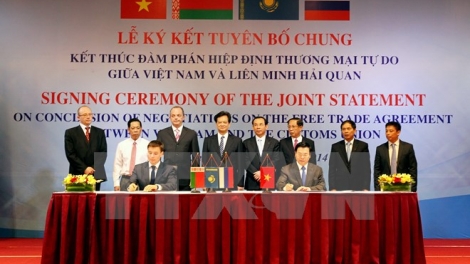 (VOV5) - Điều này được Bộ trưởng Bộ Công thương Việt Nam Vũ huy Hoàng khẳng định khi trả lời phỏng vấn báo chí sau khi VN và Liên minh Hải quan Nga-Belarus-Kazakhstan ký Tuyên bố chung kết thúc đàm phán Hiệp định thương mại tự do giữa Việt Nam và Liên minh hải quan (VCUFTA).