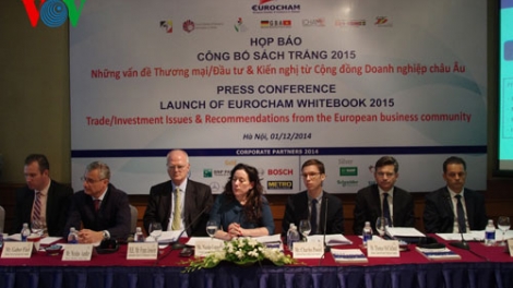 (VOV5) - Phòng thương mại châu Âu tại Việt Nam ngày 1/12, công bố Sách Trắng lần thứ 7 về các vấn đề thương mại, đầu tư và kiến nghị . Sách Trắng 2015 tóm tắt các vấn đề then chốt của doanh nghiệp châu Âu tại Việt Nam. Phát biểu tại lễ công bố Sách Trắng năm 2015, thay mặt cho Hiệp hội doanh nghiệp châu Âu tại Việt Nam Nicola Connolly, Chủ tịch Phòng thương mại Châu Âu tại Việt Nam, cho biết: trong 12 tháng qua, Phòng thương mại châu Âu tại Việt Nam đã ghi nhận những nỗ lực cải cách của chính phủ Việt Nam.