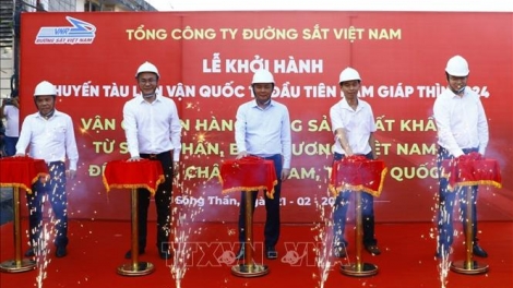 Chuyến tàu liên vận quốc tế đầu tiên năm Giáp Thìn vận chuyển hàng nông sản xuất khẩu sang Trung Quốc