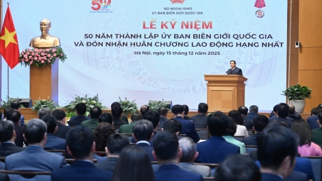 (VOV5) - Thủ tướng Phạm Minh Chính dự lễ kỷ niệm 50 năm thành lập Ủy ban Biên giới quốc gia, biểu dương đóng góp bảo vệ chủ quyền và trao Huân chương Lao động hạng Nhất cho đơn vị.