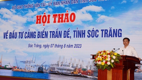 (VOV5) - Việc đầu tư bến cảng Trần Đề cho tàu biển trọng tải lớn để thực hiện việc xuất nhập khẩu hàng hóa trực tiếp cho toàn vùng đồng bằng sông Cửu Long là hết sức quan trọng.