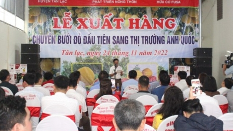 Xuất khẩu lô bưởi đỏ Tân Lạc đầu tiên sang Anh