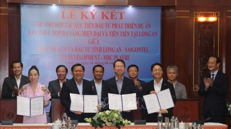 (VOV5) - Sở Công Thương tỉnh Long An, Tập đoàn Market Bridge (Hàn Quốc) và Ủy ban hỗ trợ kinh tế Hàn - Việt ký kết biên bản ghi nhớ đầu tư dự án thành lập “Trung tâm lưu thông phân phối hàng hóa”.