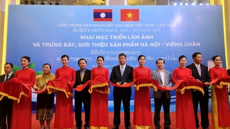 Khai mạc “Không gian triển lãm ảnh, trưng bày sản phẩm, hàng hóa Hà Nội - Vientian”