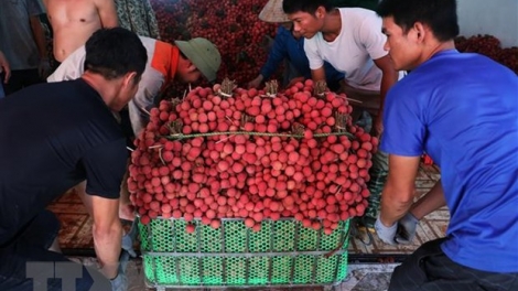 Vải thiều tươi lần đầu tiên được xuất khẩu qua cửa khẩu tại Móng Cái