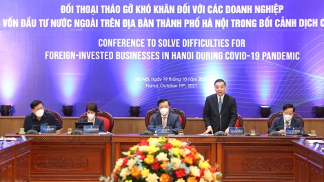 (VOV5) - Sáng 19/10, UBND thành phố Hà Nội tổ chức Hội nghị “Đối thoại tháo gỡ khó khăn đối với các doanh nghiệp có vốn đầu tư nước ngoài trên địa bàn thành phố trong bối cảnh dịch Covid-19”.