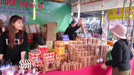 (VOV5) - Các sản phẩm OCOP của Quảng Ngãi như: Quế Trà Bồng, gà đen, gạo sạch, bánh tráng, nước mắm truyền thống được bày bán bắt mắt…
