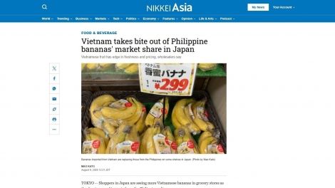 (VOV5) - Chuối Việt Nam bùng nổ tại Nhật, nhập khẩu 2024 đạt 33.000 tấn, gấp 14 lần 2019; thị phần tăng mạnh và hưởng lợi lớn khi thuế nhập khẩu về 0% vào năm 2028.