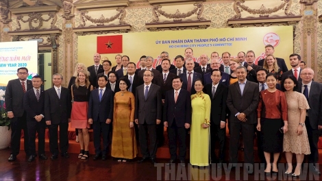 (VOV5) - Tối 15/1, Ủy ban nhân dân Thành phố Hồ Chí Minh tổ chức gặp gỡ các cơ quan đại diện nước ngoài tại Thành phố nhân dịp đầu năm 2020 và mừng Xuân Canh Tý.