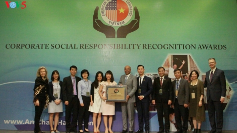 (VOV5) - Giải thường CSR của AmCham ra đời với vai trò nâng cao nhận thức về trách nhiệm xã hội của doanh nghiệp thành viên của Hiệp hội và cộng đồng.