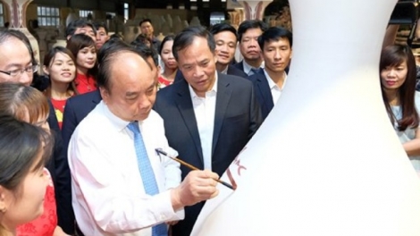 (VOV5) - Thủ tướng Nguyễn Xuân Phúc tin tưởng làng nghề gốm Chu Đậu sẽ phát triển mạnh mẽ trong tương lai và đóng góp cho xuất khẩu.