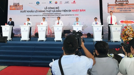 (VOV5) - Lễ công bố xuất khẩu lô hàng thịt gà đầu tiên của Việt Nam sang thị trường Nhật Bản diễn ra ngày 9/9, tại cảng quốc tế Long An.
