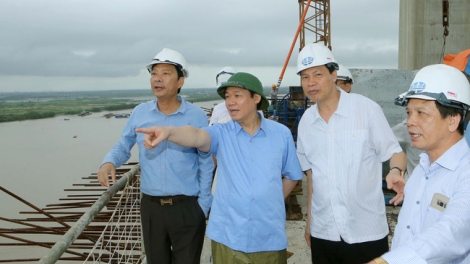 Phó Thủ tướng Vương Đình Huệ thị sát dự án BOT cầu Bạch Đằng