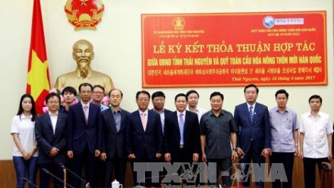 (VOV5) - Ngày 24/4, UBND tỉnh Thái Nguyên tổ chức Lễ ký kết thỏa thuận hợp tác với Quỹ toàn cầu hóa hóa nông thôn mới Hàn Quốc.