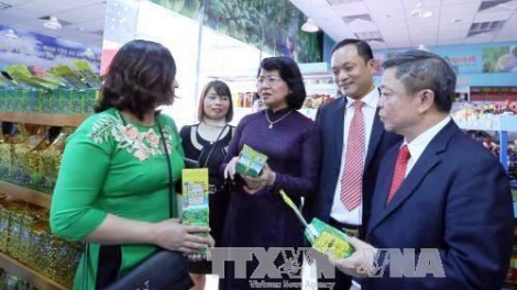 (VOV5) - Chiều 13/2, Phó Chủ tịch nước Đặng Thị Ngọc Thịnh dự và cắt băng khai trương siêu thị tiêu thụ thực phẩm nông sản an toàn UCAmart tại Hà Nội.
