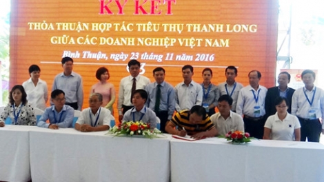 (VOV5) - Tại hội nghị, các nhà sản xuất, doanh nghiệp trong nước và nước ngoài cùng bàn bạc, thỏa thuận phương thức hợp tác và ký kết một số hợp đồng tiêu thụ thanh long.