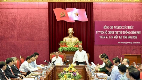 (VOV5) - Thay đổi mạnh mẽ về tư duy quản lý, đẩy mạnh thu hút đầu tư, phấn đấu tự trang trải ngân sách, đó là những mục tiêu, kỳ vọng của Thủ tướng Nguyễn Xuân Phúc trong buổi làm việc với lãnh đạo chủ chốt tỉnh Hòa Bình – địa phương cửa ngõ Tây Bắc Thủ đô.