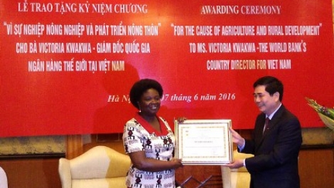 Trao kỷ niệm chương vì sự nghiệp nông nghiệp cho bà Victoria Kwakwa nguyên Giám đốc WB tại Việt Nam