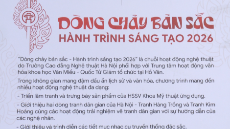 (VOV5) - Diễn ra tại không gian văn hoá Hồ Văn thuộc Di tích Quốc gia đặc biệt Văn Miếu - Quốc Tử Giám, Hà Nội, chuỗi hoạt động nghệ thuật “Dòng chảy bản sắc - hành trình sáng tạo năm 2026” mở ra cuộc đối thoại giữa truyền thống và sáng tạo đương đại mang đến nhiều trải nghiệm hấp dẫn cho công chúng.